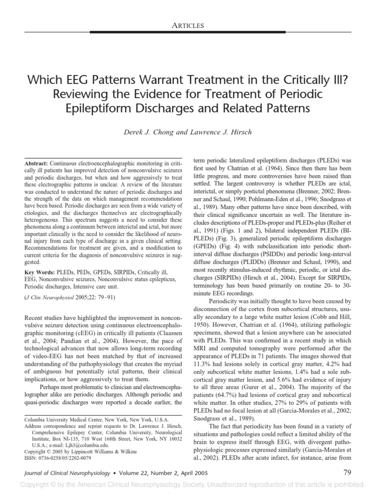 Periodic Lateralized Epileptiform Discharges A Critical Revi
