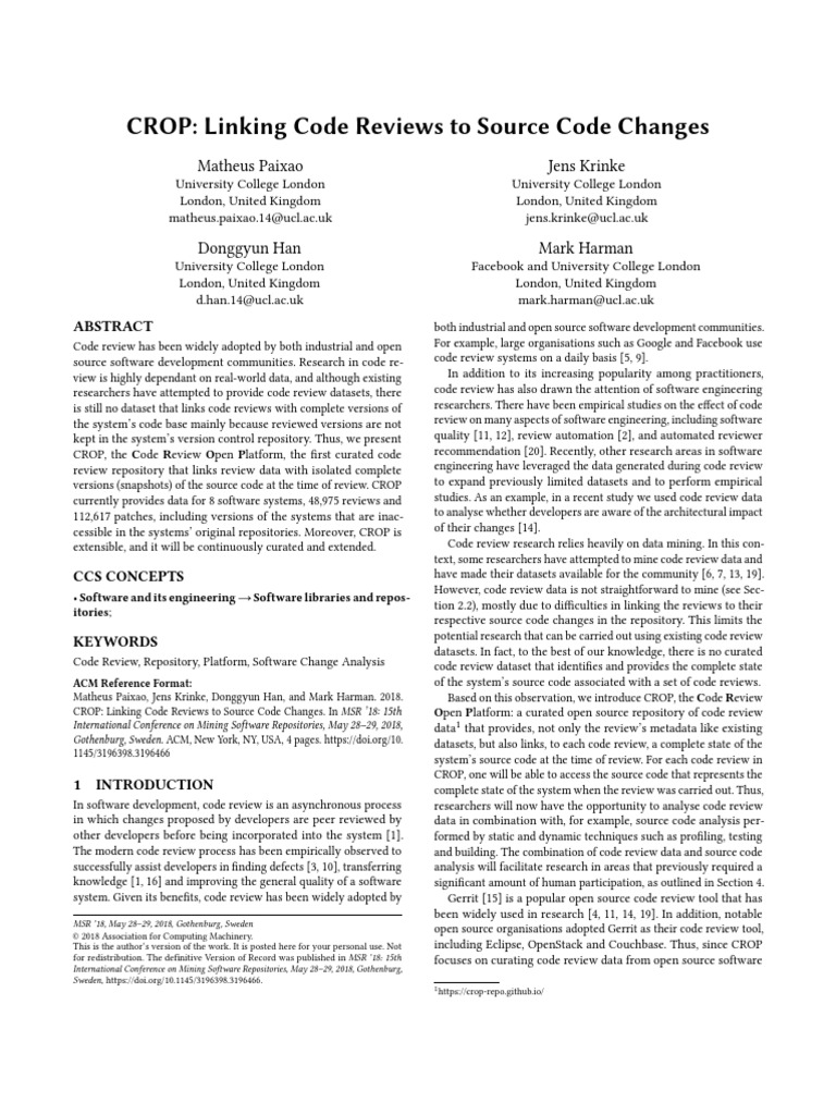 Pdf Mining The Modern Code Review Repositories A Dataset Of